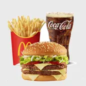 دوبل كبير لذيذ. إنها ليست قطعة واحدة فحسب، بل قطعتين لحم بقرى لذيذ بين شرائح جبنة إيمنتال، مغطاة بشرائح طماطم، خس مبشور، بصل وصوص بيج تايستي الخاص.