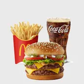 دبل ماكرويال®. قطعتين من اللحم البقري الطري بين شرائح جبنة مغطاة بصوص ماك رويال الخاص، خس مقرمش، طماطم طازجة، بصل ومخلل، كلها داخل خبز بالسمسم.