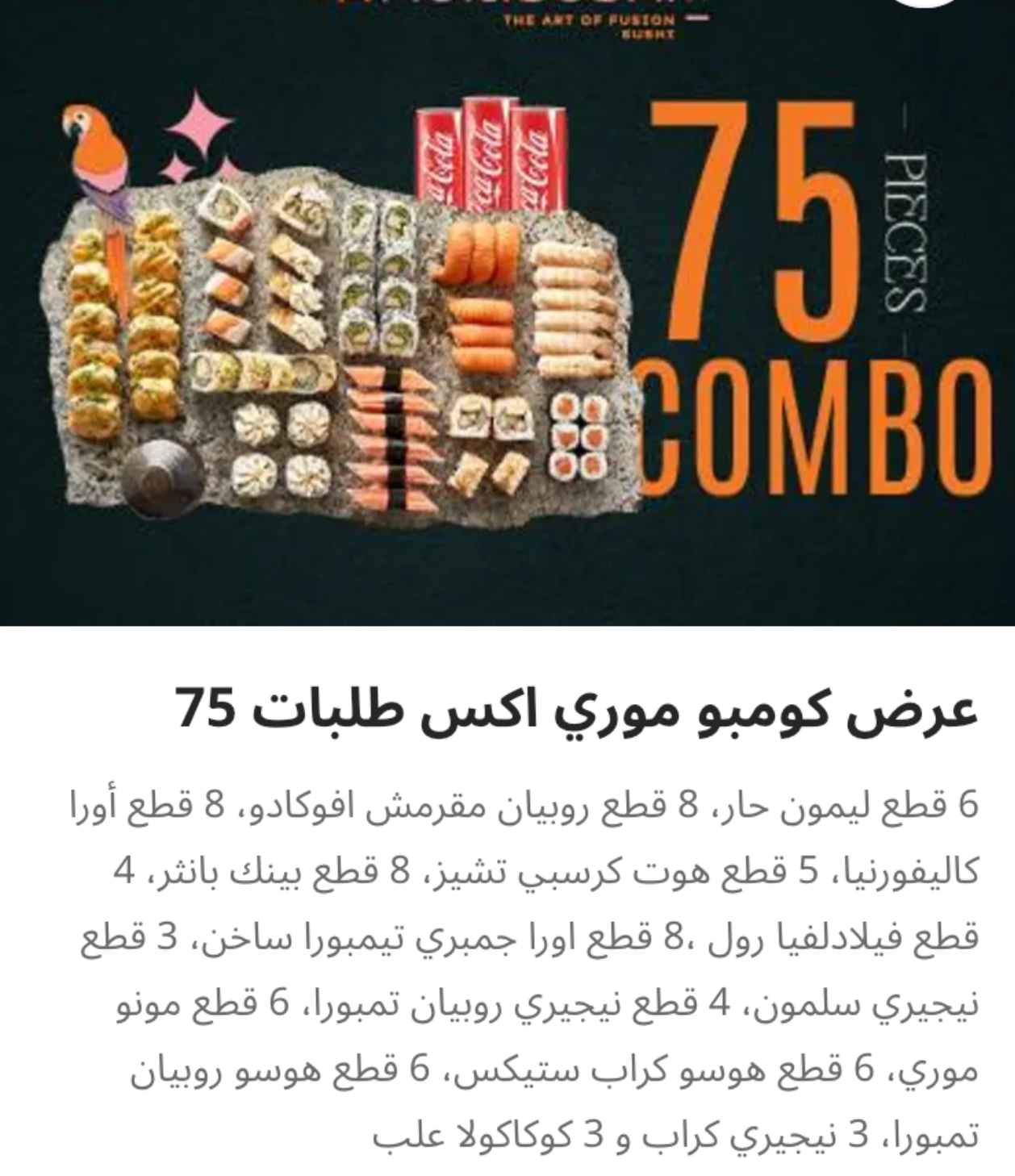 وجبه ١٨ قطعه وبطاطس وكلوسلو وبيبسي